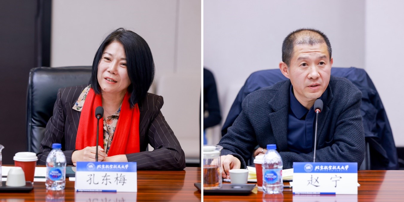 1978级外国语学院本科校友、株式会社日中开发董事长李大清表示,毕业以来一直牵挂着母校,将做好联络沟通工作,与广大校友携手继续为母校发展出力。1982级材料科学与工程学院本科校友、翊飞航空科技(北京)有限公司董事长徐强回忆了自己在北航的求学经历,对学校校企联合培养人才提供意见建议。1990级计算机学院本科校友、光明网总裁杨谷表示会大力支持学校宣传思想工作,助力母校弘扬以“空天报国”为内核的北航精神。1991级经济管理学院本科校友、沃太能源德国分公司总经理陆小慧希望学校能进一步加大与海外校友的联络,充分发挥海外校友组织的作用与优势。