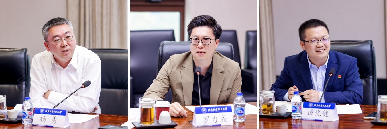 1997级经济管理学院本科校友,北京市朝阳区委常委、区人民政府党组成员、副区长舒毕磊表示,期待校地双方加强在科技创新、人才队伍建设等方面的合作。1998级机械工程及自动化学院本科校友、九号有限公司董事长高禄峰表示希望学校加强对学生创新创业、动手实践、组织领导等全方位能力的培养。1999级法学院本科校友、北京市丰台区委社会工作部部长杨勇就校地双方开展互学共建、干部交流等提出意见建议。2003级自动化科学与电气工程学院本科校友、宁波圣龙汽车动力系统股份有限公司董事长罗力成从企业发展现实需求谈起,表示希望能够进一步推动校企双方拓展技术合作领域。2010级机械工程及自动化学院本科校友、航空工业成飞440公司室主任谭化健介绍了四川校友会的工作情况,表示希望北航毕业生能够到祖国最需要的地方扎根立业。1983级自动化科学与电气工程学院本科校友、西安爱科赛博电气股份有限公司董事长白小青期待母校加大卓越工程师培养力度。