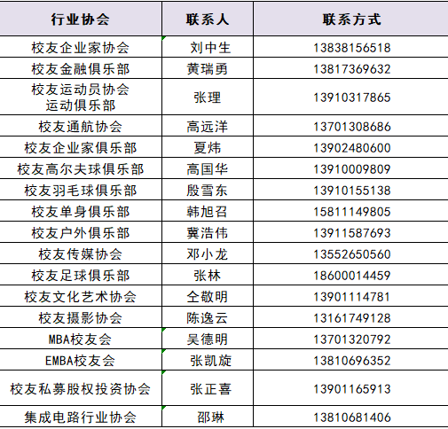 各行业、协会、俱乐部联络方式