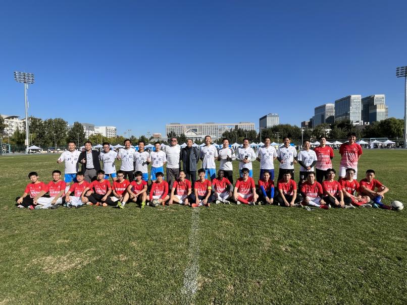 参观结束后,学院党委副书记从保强陪同校友们到学院路足球场与在校生举办联谊球赛。