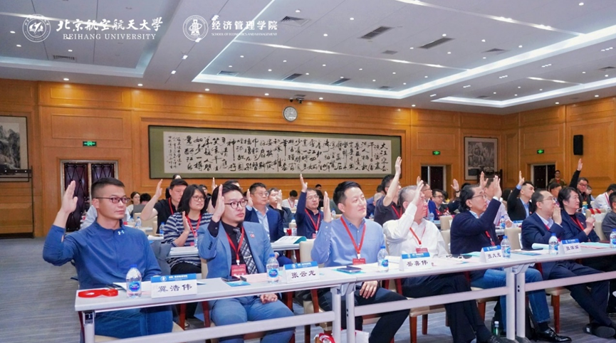 会议审议通过了北航经管学院校友会章程,选举产生了新一届校友理事会理事、常务理事、会长、联席会长、副会长、秘书长、执行秘书长,提名通过了校友会顾问、副秘书长。北航校友会秘书长、校友联络发展处处长张慧渊为经济管理学院校友会颁发会牌,并为新一届会长郑海涛、联席会长边程授予聘书;第二届校友会联席会长边程为副会长、秘书长、副秘书长颁发聘书。